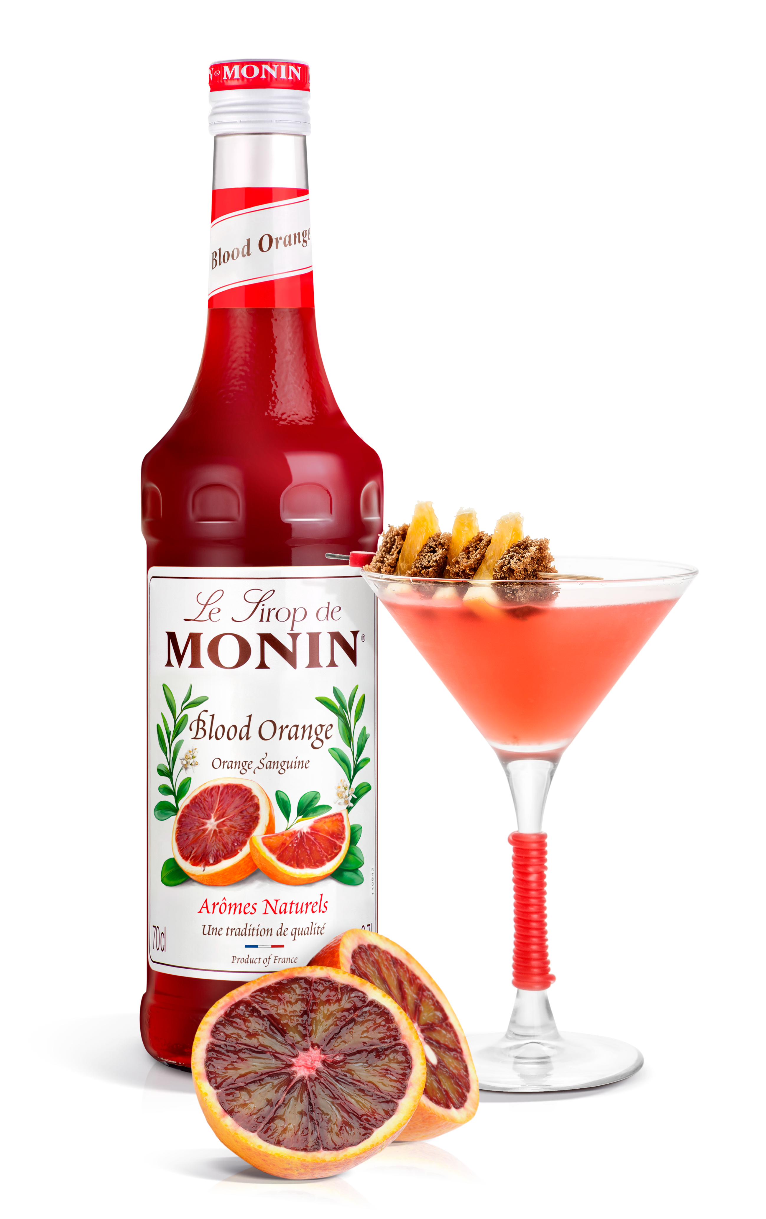 Sirup av merket Monin med smak av blodappelsin (Blood Orange), som inneholder naturlige fargestoffer. Tilsetter god smak til drinker, milkshake og kaffe. Se beskrivelse for næringsinnhold.