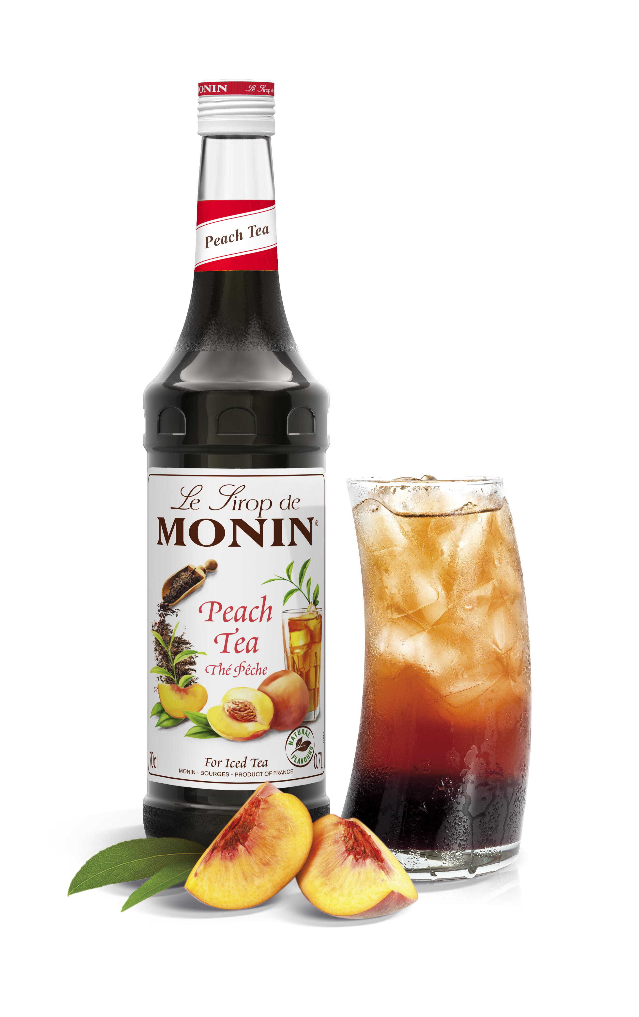 Sirup av merket Monin med smak av Peach Ice Tea, som inneholder naturlige fargestoffer. Tilsetter god smak til drinker, saft, iste og andre forfriskende drikke. Se beskrivelse for næringsinnhold.