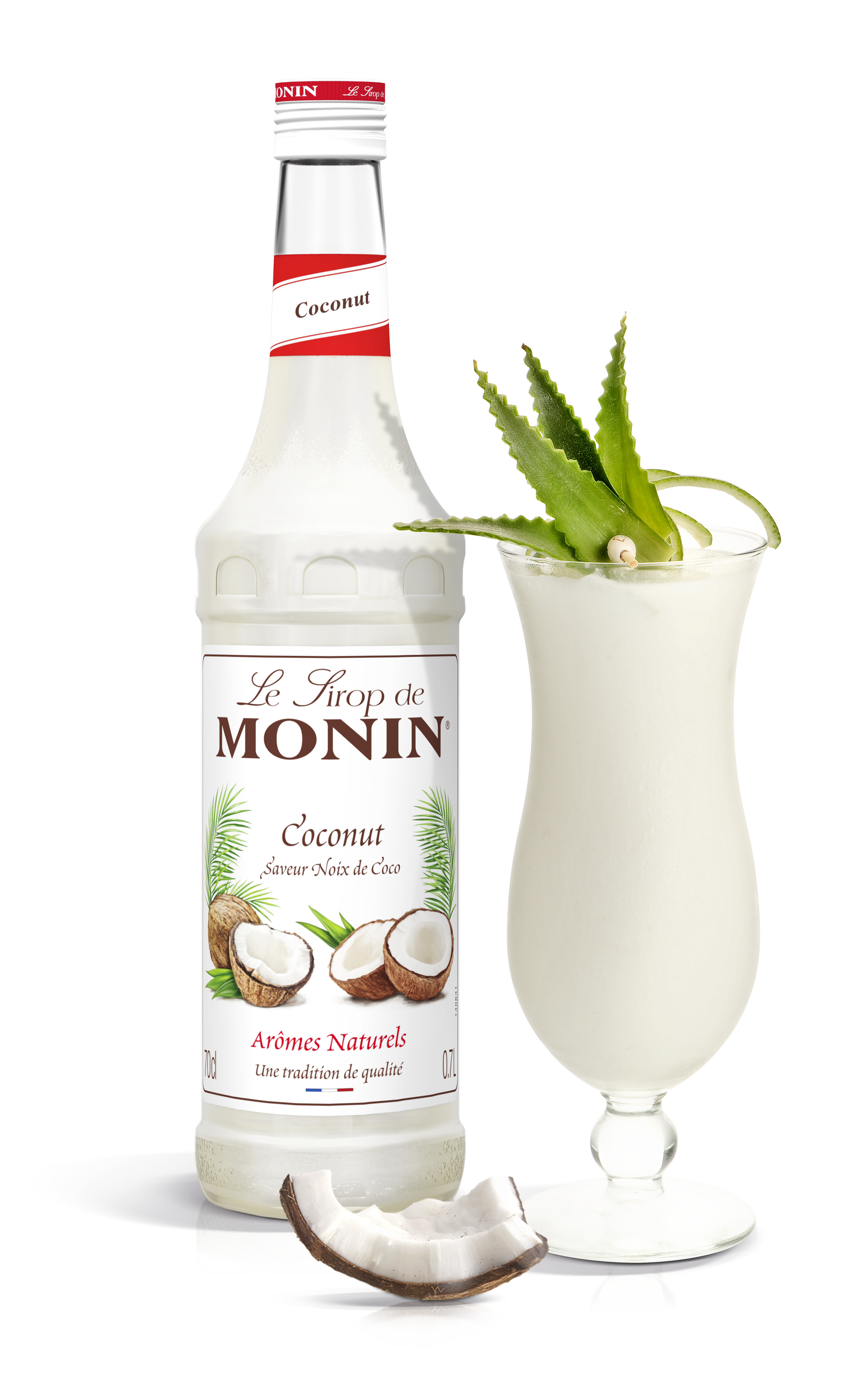 MONIN Coconut sirup fanger de søte, melkeaktige smakene av kokosnøtt og vil ha alle dine alkoholholdige eller ikke-alkoholholdige drikker. Den vil legge til en original vri på Negroni, Tequila, Old-Fashion eller til en rolig iste på en sommerdag.