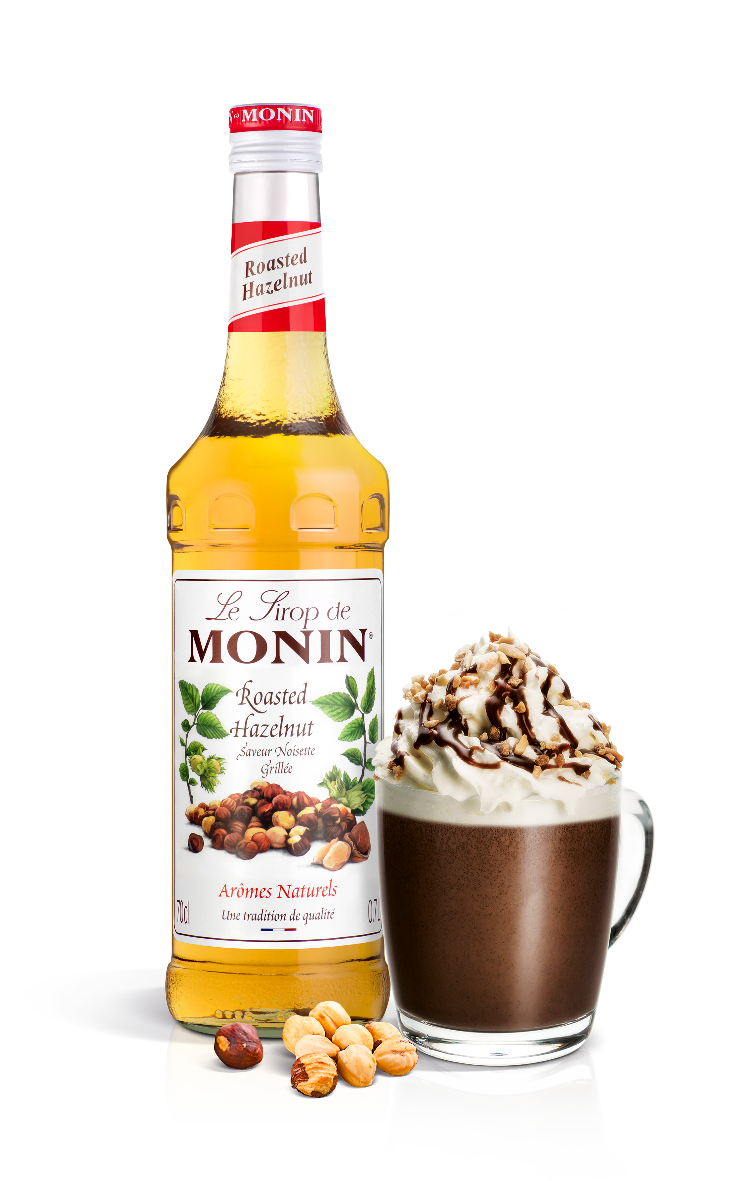 Sirup av merket Monin med smak av ristet hasselnøtt (Roasted Hazelnut), som kun inneholder naturlige fargestoffer. Tilsetter god smak til drinker, milkshake og kaffe. Se beskrivelse for næringsinnhold.